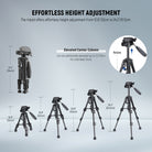 - Effortless Height Adjustment & Elevated Center Column- The tripod offers effortless height adjustment with its versatile design. The 3 section legs can be easily adjusted from 9.8"/25cm to 18.9"/48cm using flip locks, while the center column can be additionally elevated up to 3.2"/8cm. With an overall height range of 12.6"~24.2"/32~61.5cm, this tripod provides flexibility for capturing the perfect shot in any situation