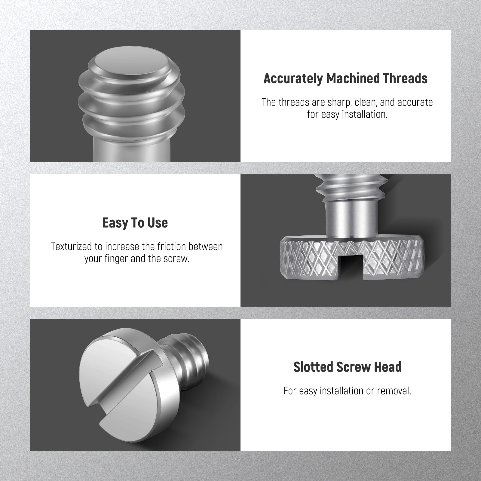 - Wider Compatibility- The 1/4'' slotted screws are compatible with camera mounting plates, quick-release plates, tripods, monopods, and camera and telescope mounts with 1/4'' threaded holes